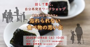 「ふりかえり、話す、書く、残す、楽しむ」が気軽に体験できる自分史ワークショップです。